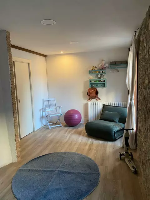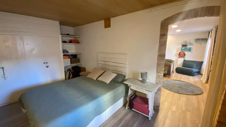 * Segona planta: una habitació doble, un bany complet i un saló o despatx addicional, ideal com a zona de treball o espai de descans.