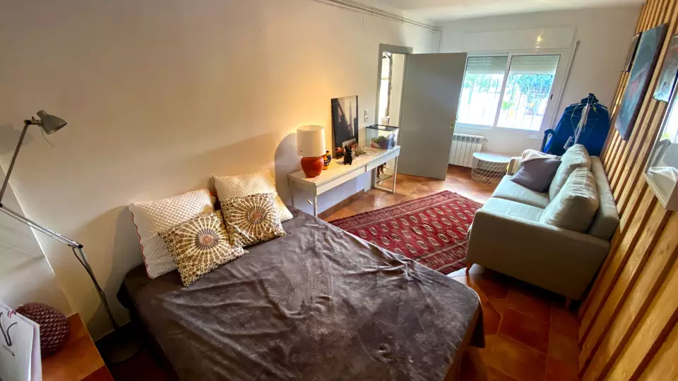 La casa se encuentra sobre una parcela con jardín privado de aproximadamente 338 m², donde destaca su piscina privada, perfecta para disfrutar del sol y la tranquilidad en un entorno mediterráneo.